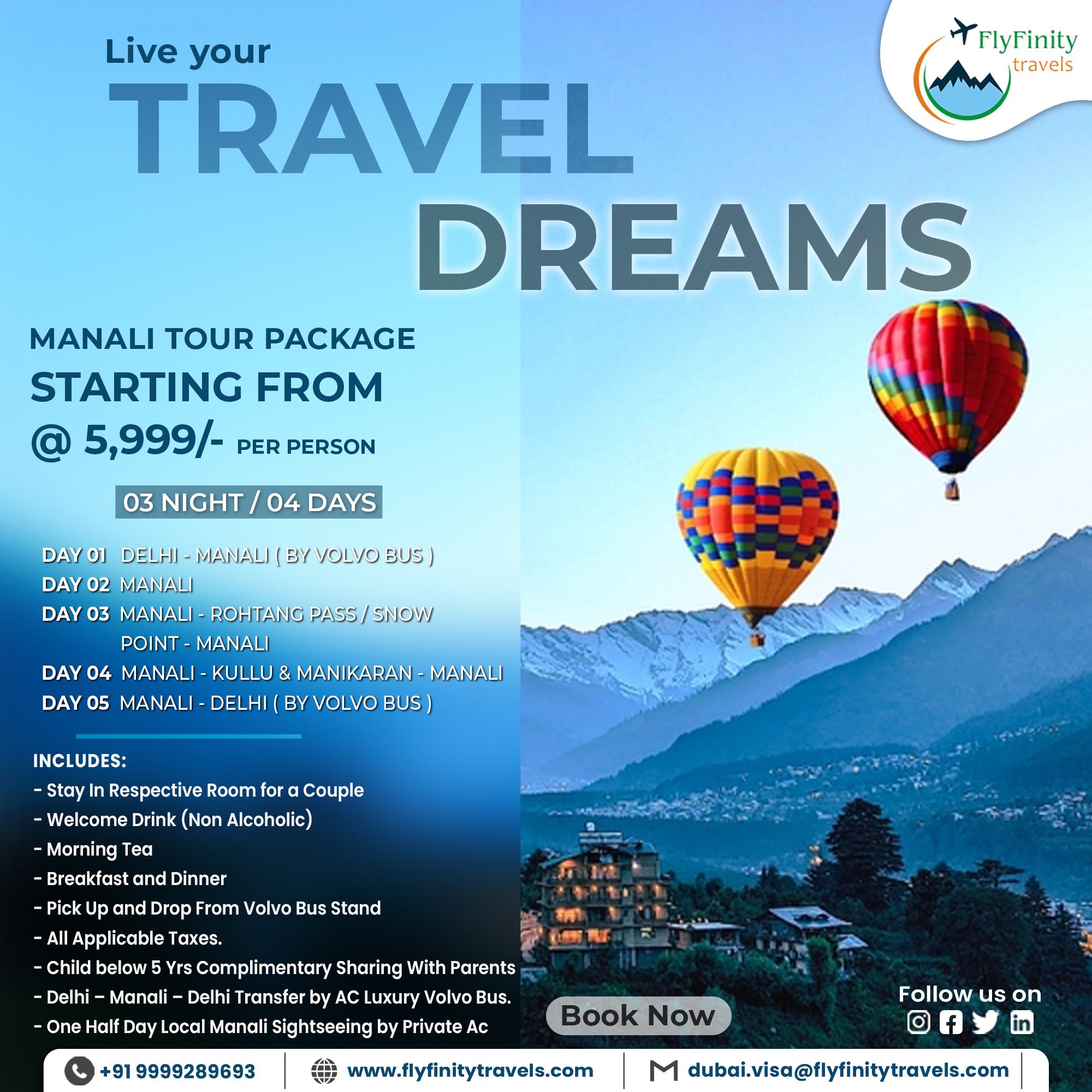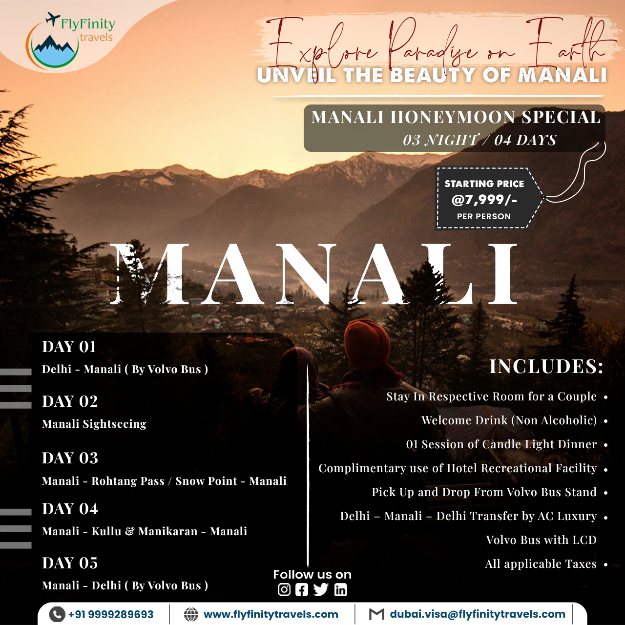 Morning after Beakfast take some rest at hotel. Enjoy shopping at Mall Road then check out from the hotel. Evening at 4:00 PM catch Volvo bus from private bus stand. Overnight journey in Volvo bus.